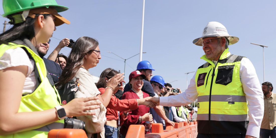 Morelia, Michoacán, 19 de febrero de 2026.- Luego de cinco meses de construcción, el gobernador Alfredo Ramírez Bedolla abrió a la circulación el puente norte del distribuidor vial Eréndira, ubicado en las inmediaciones del Mercado de Abastos, con el cual, esta obra de infraestructura tiene ya flujo vehicular en ambos sentidos para beneficio diario de 392 mil personas.