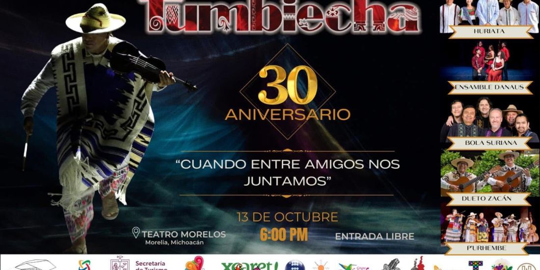 Morelia, Michoacán, 13 de octubre de 2024.- Tumbiecha está de regreso a casa para celebrar sus 30 años de trayectoria con un concierto con acceso libre que ofrecen este domingo 13 de octubre en el Teatro Morelos en punto de las 18:00 horas, por lo que se recomienda llegar 30 minutos antes de la hora marcada, y de esta manera, los asistentes comiencen a ocupar los lugares.